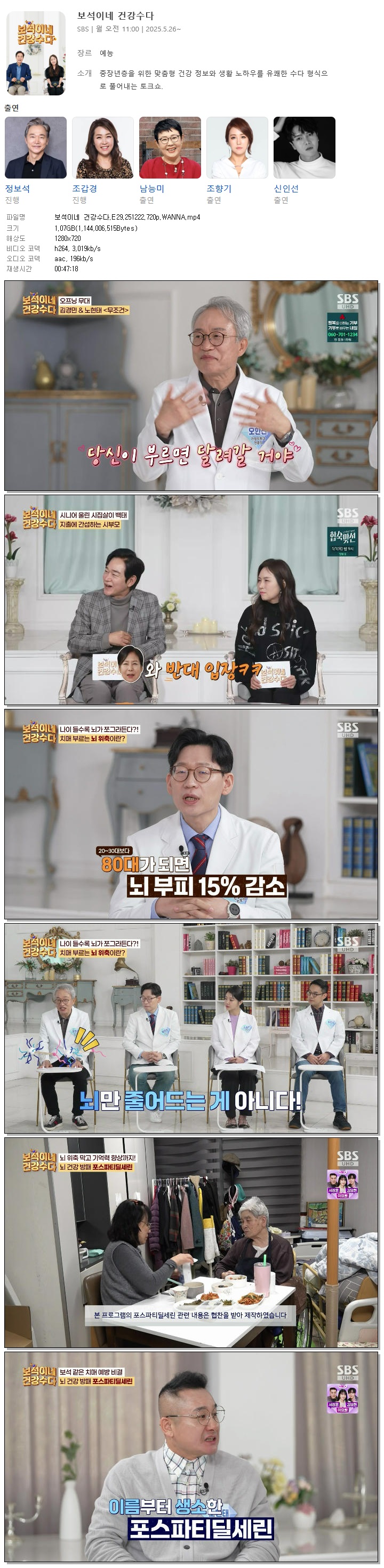 [SBS] 보석이네 건강수다.E29.251222.720p.WANNA[정보석, 조갑경].mp4 1.1 G 00:47:18 1280x720