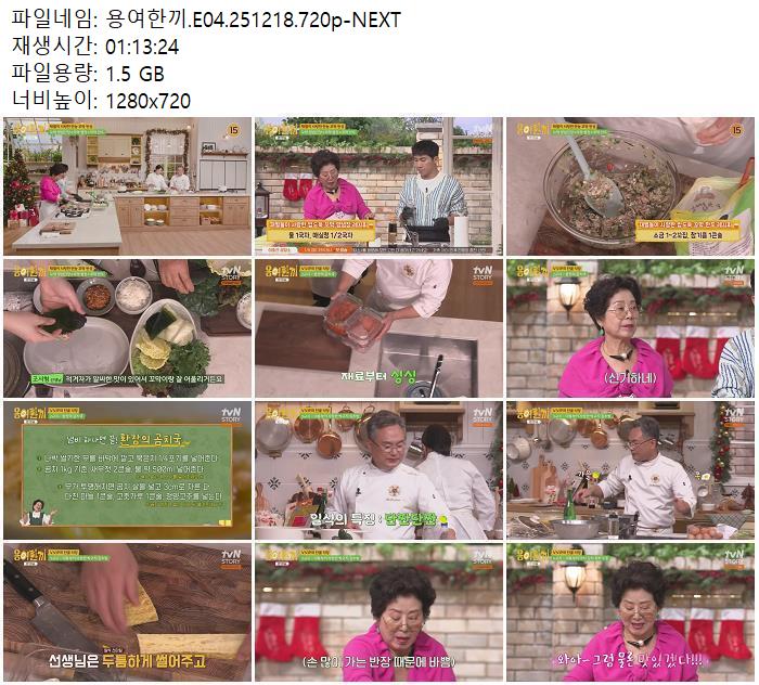 | 용여한끼.E04.251218.720p-NEXT.mp4 | 1.5 G | 01:13:00 | 1280x720 |