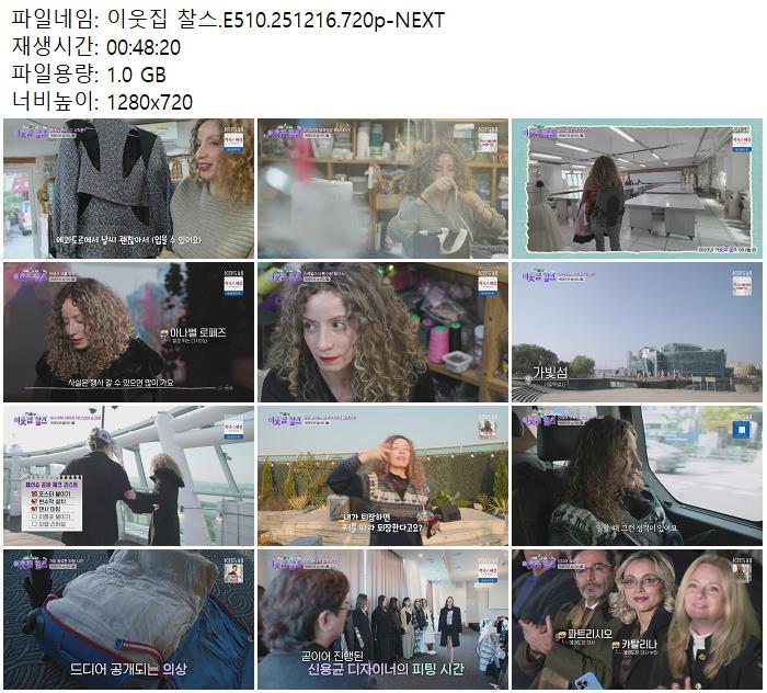 | 이웃집 찰스.E510.251216.720p-NEXT.mp4 | 1 G | 00:48:20 | 1280x720 |