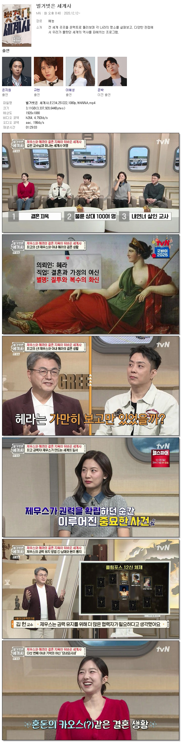 [TVN] 벌거벗은 세계사.E234.251222.1080p.WANNA[은지원, 규현].mp4 3.1 G 01:29:03 1920x1080