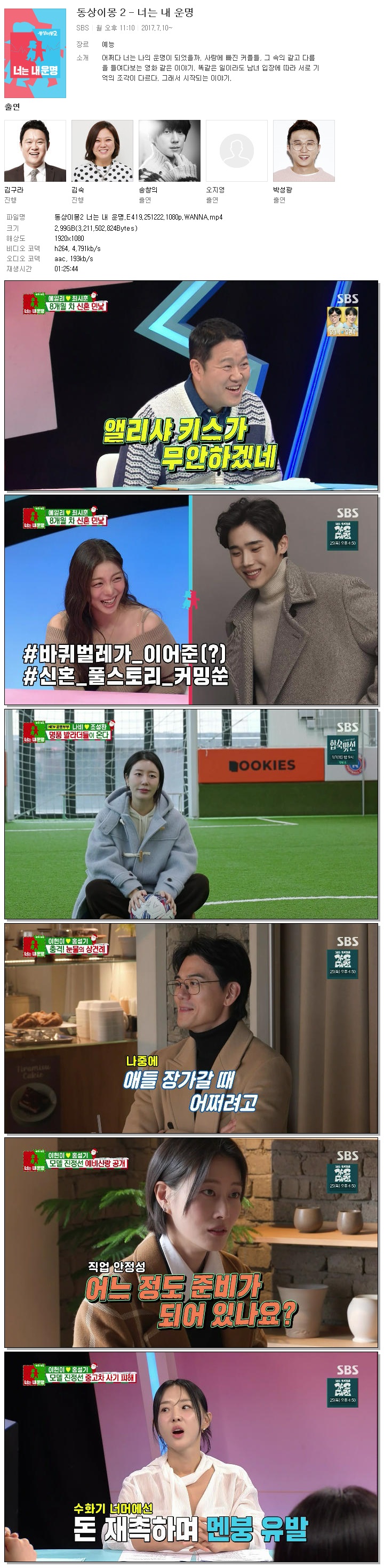 | [SBS] 동상이몽2 너는 내 운명.E419.251222.1080p.WANNA[에일리, 나비].mp4 | 3 G | 01:25:44 | 1920x1080 |