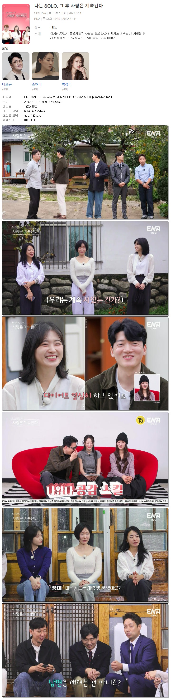 | [ENA] 나는 솔로, 그 후 사랑은 계속된다.E145.251225.1080p.WANNA[경리, 보미].mp4 | 2.5 G | 01:12:53 | 1920x1080 |