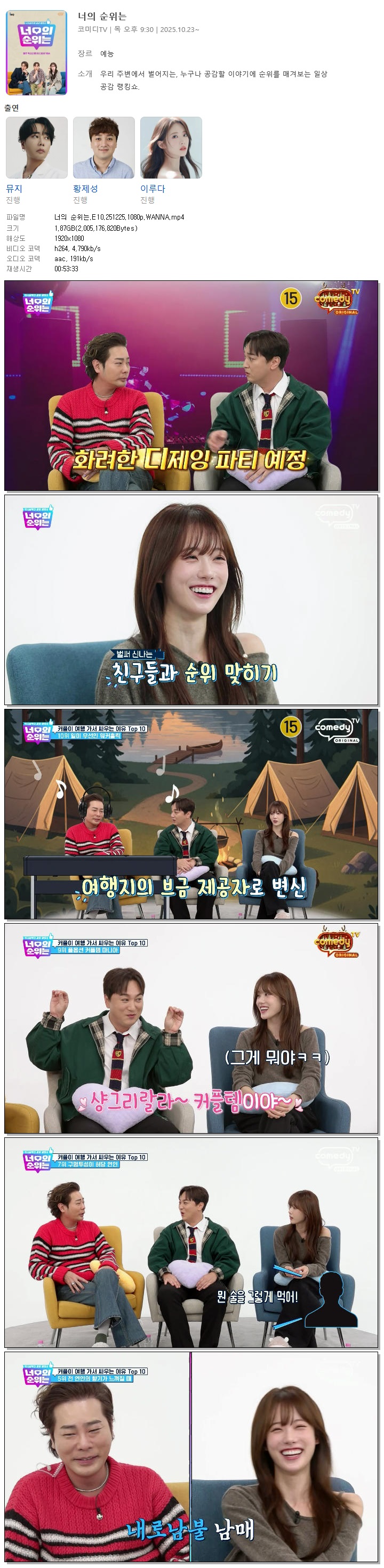 | [코미디TV] 너의 순위는.E10.251225.1080p.WANNA[뮤지, 황제성].mp4 | 1.9 G | 00:53:33 | 1920x1080 |