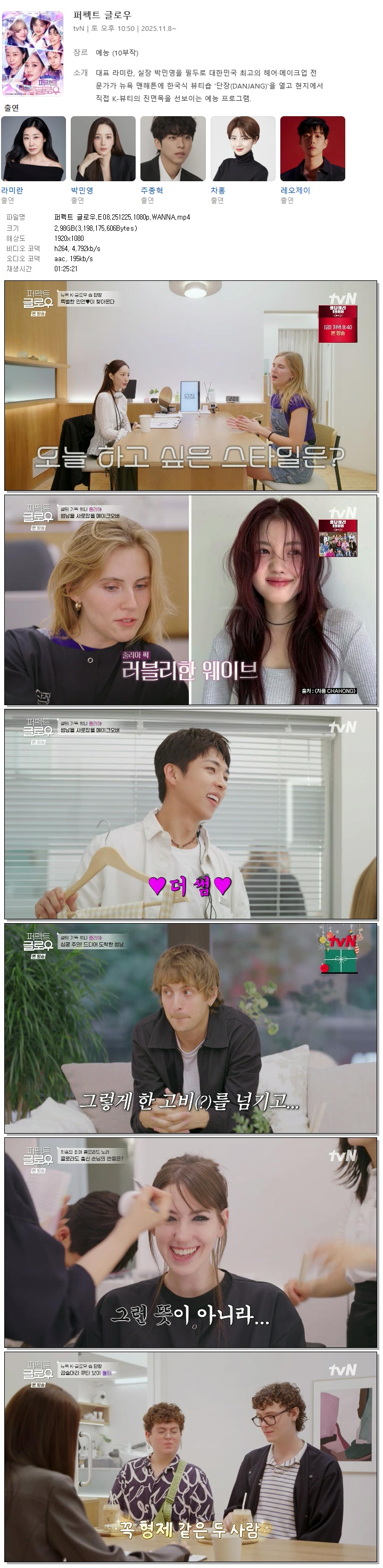 | [TVN] 퍼펙트 글로우.E08.251225.1080p.WANNA[라미란, 박민영].mp4 | 3 G | 01:25:21 | 1920x1080 |