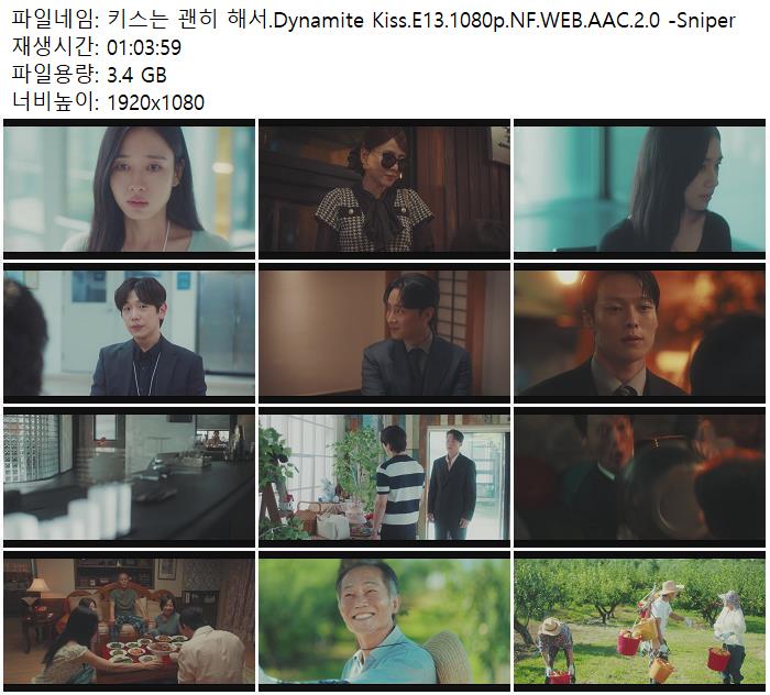 | 키스는 괜히 해서!.Dynamite Kiss.E13.1080p.NF.WEB.AAC.2.0 -Sniper.mkv | 3.4 G | 01:03:00 | 1920x1080 |