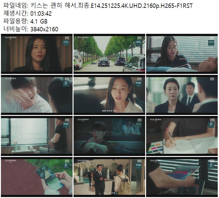 | 키스는 괜히 해서!.최종.E14.251225.4K.UHD.2160p.H265-F1RST.mp4 | 4.1 G | 01:03:00 | 3840x2160 |
