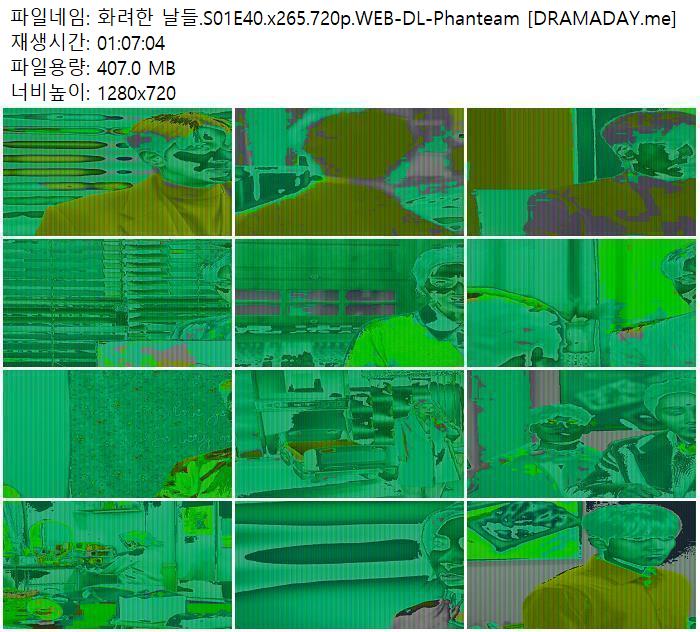 | 화려한 날들.S01E40.x265.720p.WEB-DL-Phanteam [DRAMADAY.me].mkv | 407 M | 01:07:00 | 1280x720 |
