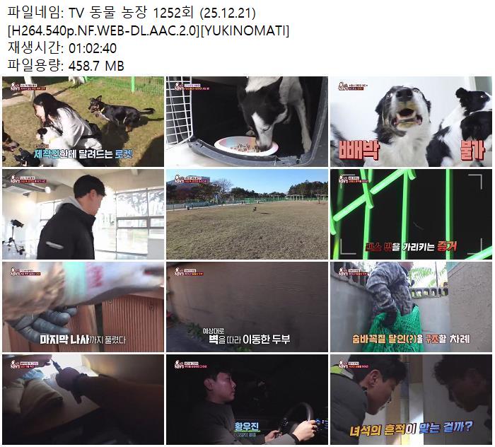 | TV 동물 농장 1252회 (25.12.21) [H264.540p.NF.WEB-DL.AAC.2.0][YUKINOMATI].mkv | 458.7 M | 01:02:00 | 960x540 |