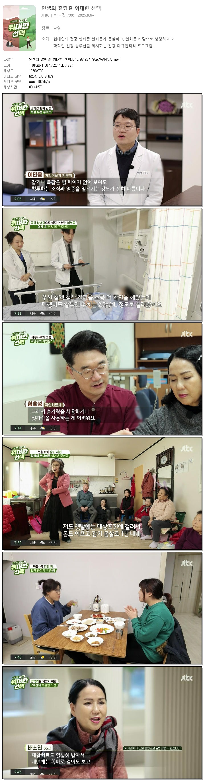 | [JTBC] 인생의 갈림길 위대한 선택.E16.251227.720p.WANNA.mp4 | 1 G | 00:44:57 | 1280x720 |