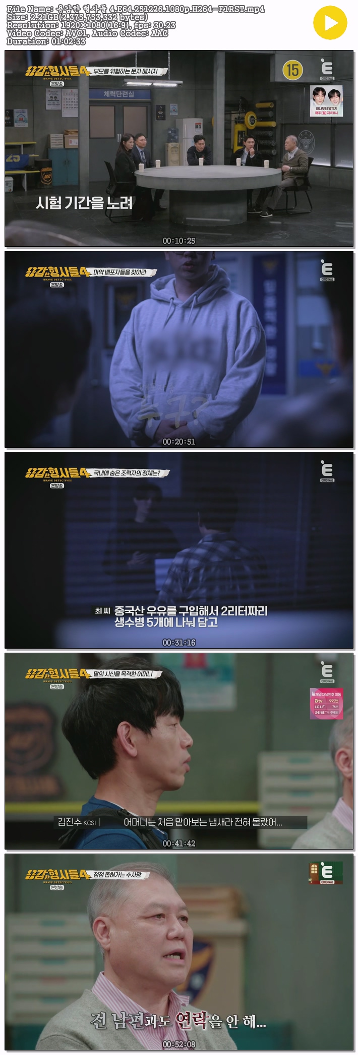 | 용감한 형사들 4.E64.251226.1080p.H264-F1RST.mp4 | 2.2 G | 01:02:33 | 1920x1080 |