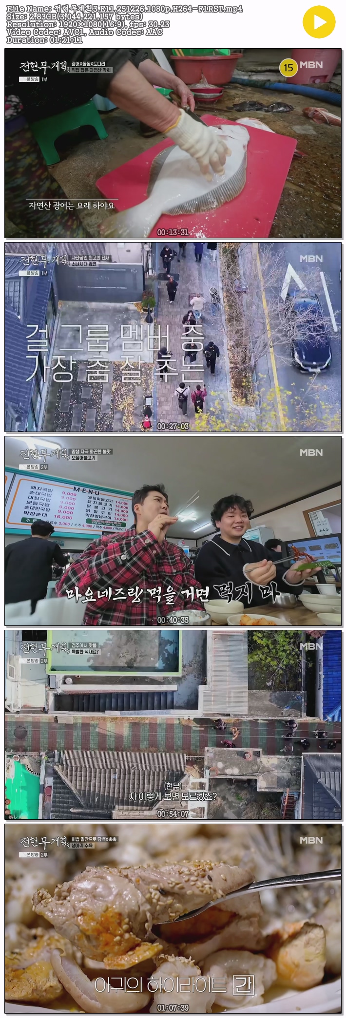 | 전현무계획3.E11.251226.1080p.H264-F1RST.mp4 | 2.8 G | 01:21:11 | 1920x1080 |