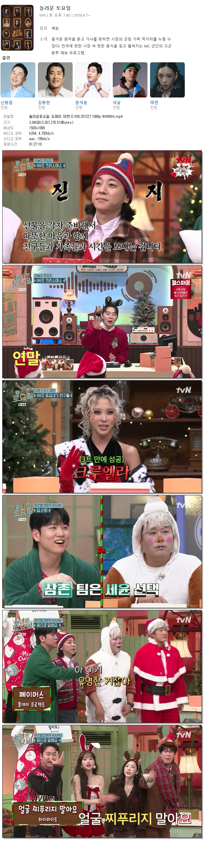 [TVN] 놀라운토요일 도레미 마켓.E398.251227.1080p.WANNA[다영, 채연].mp4 3 G 01:27:10 1920x1080