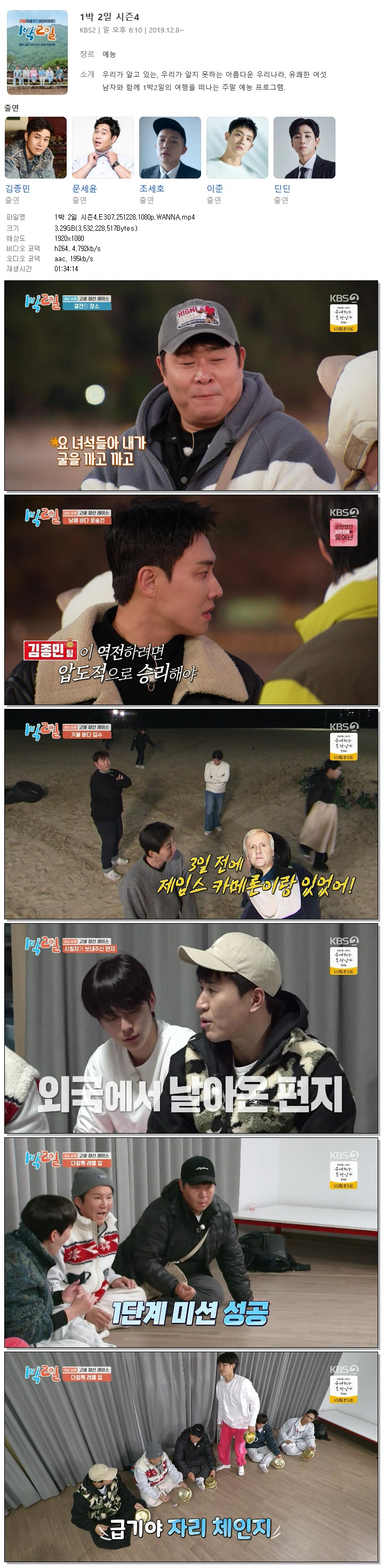 | [KBS2] 1박 2일 시즌4.E307.251228.1080p.WANNA[문세윤, 이준].mp4 | 3.3 G | 01:34:14 | 1920x1080 |