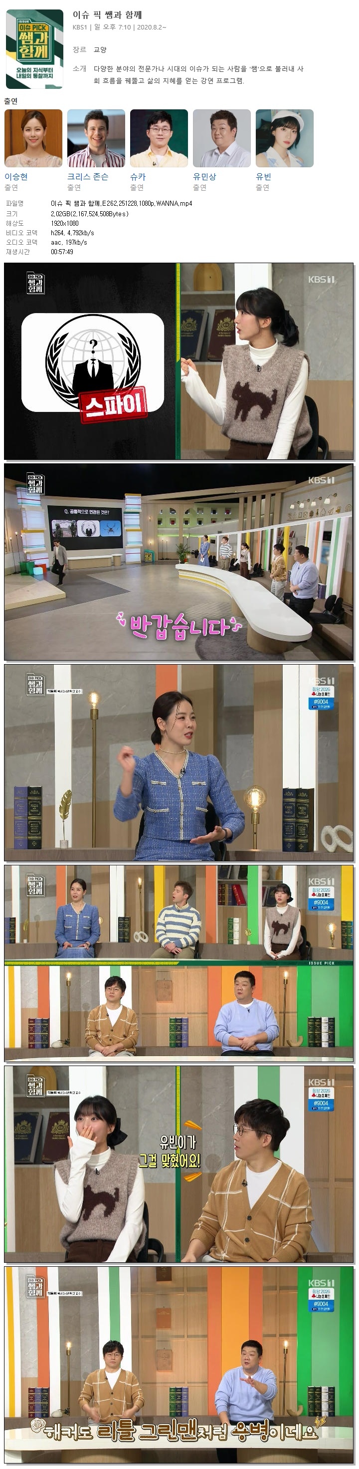 [KBS1] 이슈 픽 쌤과 함께.E262.251228.1080p.WANNA[이승현, 유민상].mp4 2 G 00:57:49 1920x1080