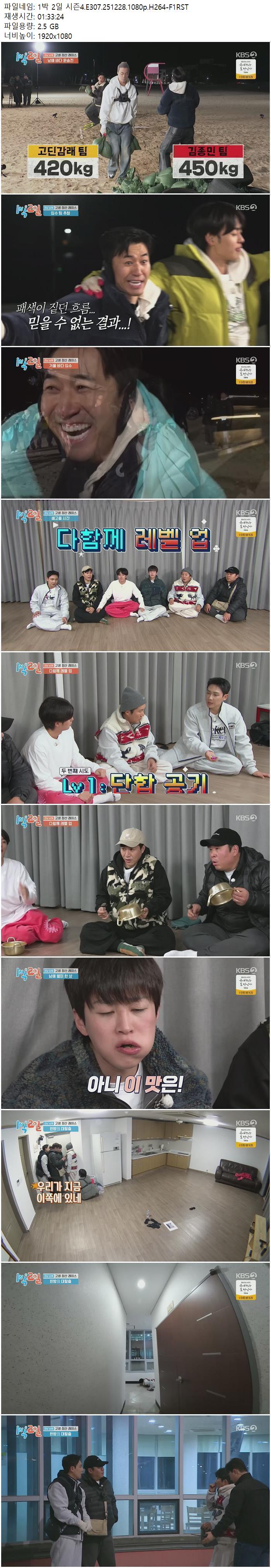 | 1박 2일 시즌4.E307.251228.1080p.H264-F1RST.mp4 | 2.5 G | 01:33:24 | 1920x1080 |