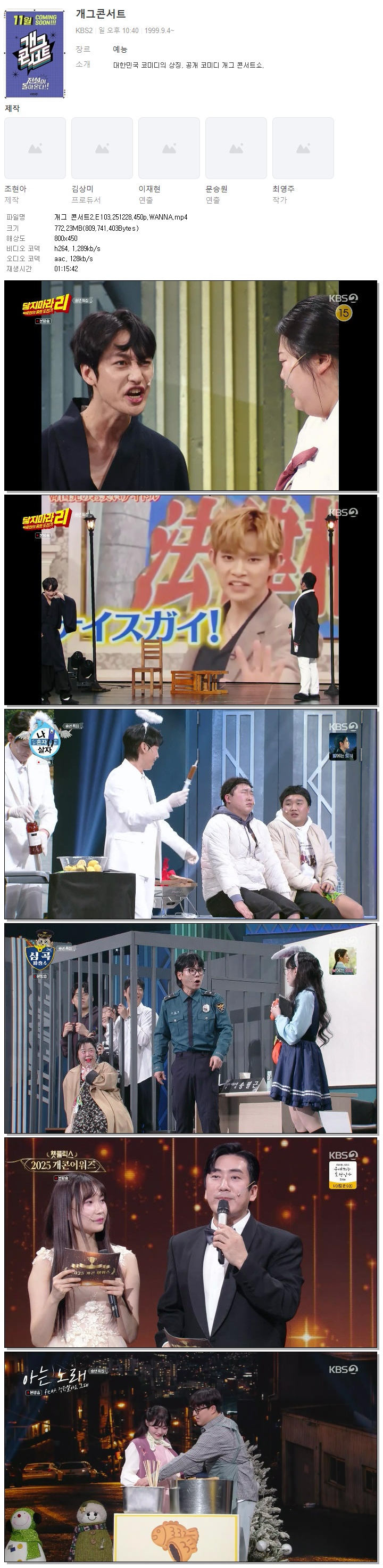 | [KBS2] 개그 콘서트2.E103.251228.450p.WANNA[신윤승, 송필근].mp4 | 772.2 M | 01:15:42 | 800x450 |
