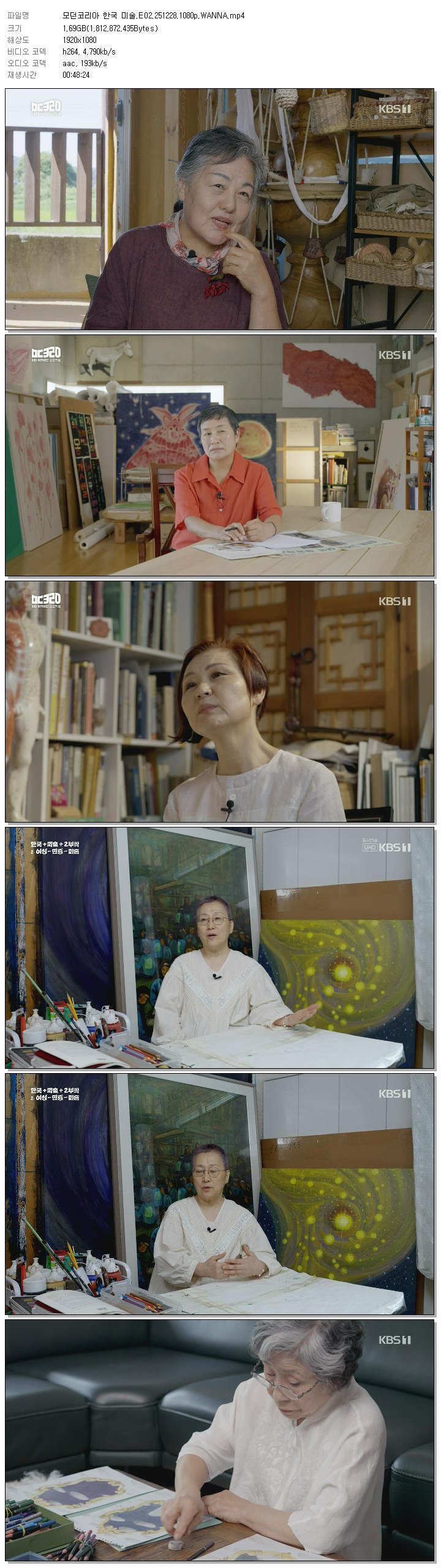 | [KBS1] 모던코리아 한국 미술.E02.251228.1080p.WANNA.mp4 | 1.7 G | 00:48:24 | 1920x1080 |