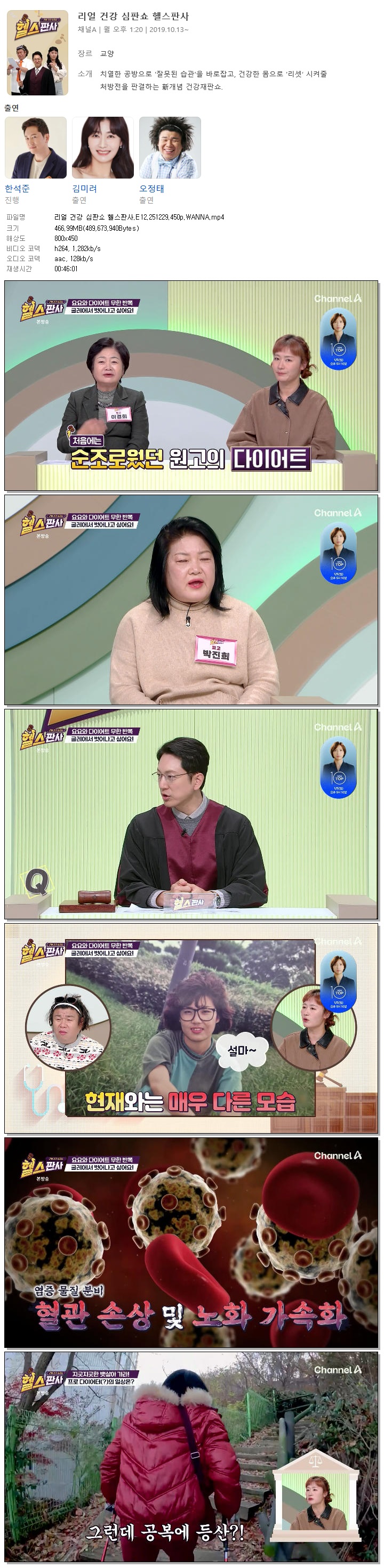 [채널A] 리얼 건강 심판쇼 헬스판사.E12.251229.450p.WANNA[한석준, 김미려].mp4 467 M 00:46:01 800x450