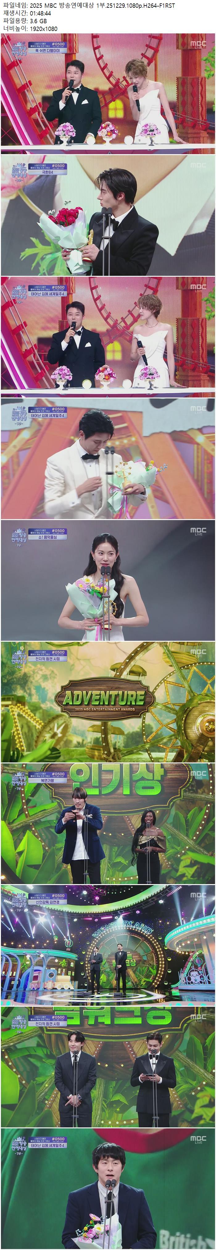 | 2025 MBC 방송연예대상 1부.251229.1080p.H264-F1RST.mp4 | 3.6 G | 01:48:44 | 1920x1080 |