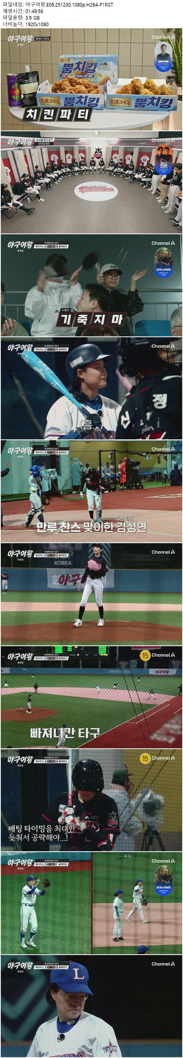| 야구여왕.E06.251230.1080p.H264-F1RST.mp4 | 3.9 G | 01:49:56 | 1920x1080 |