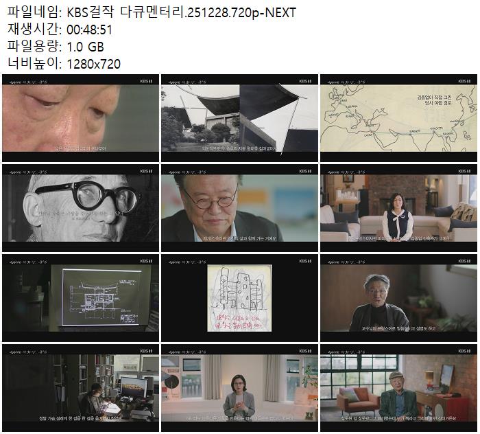 | KBS걸작 다큐멘터리.251228.720p-NEXT.mp4 | 1 G | 00:48:51 | 1280x720 |