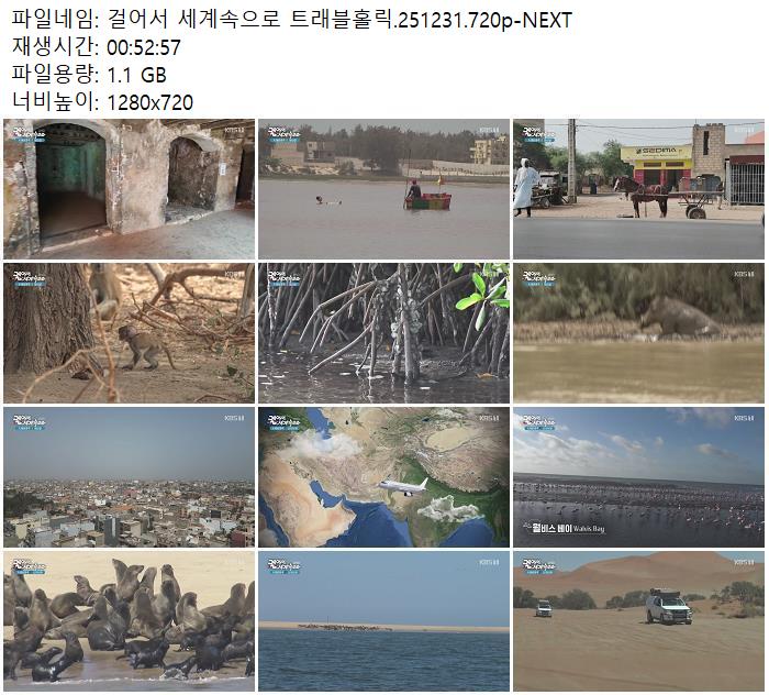 | 걸어서 세계속으로 트래블홀릭.251231.720p-NEXT.mp4 | 1.1 G | 00:52:57 | 1280x720 |