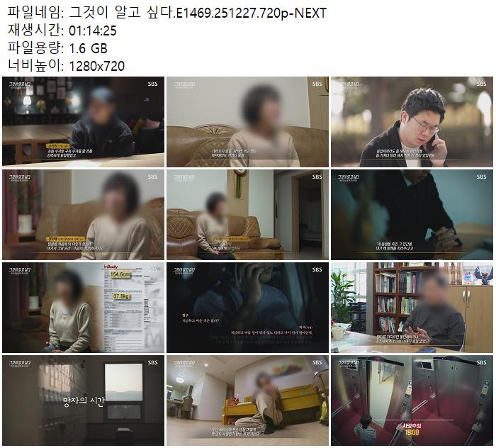 | 그것이 알고 싶다.E1469.251227.720p-NEXT.mp4 | 1.6 G | 01:14:00 | 1280x720 |