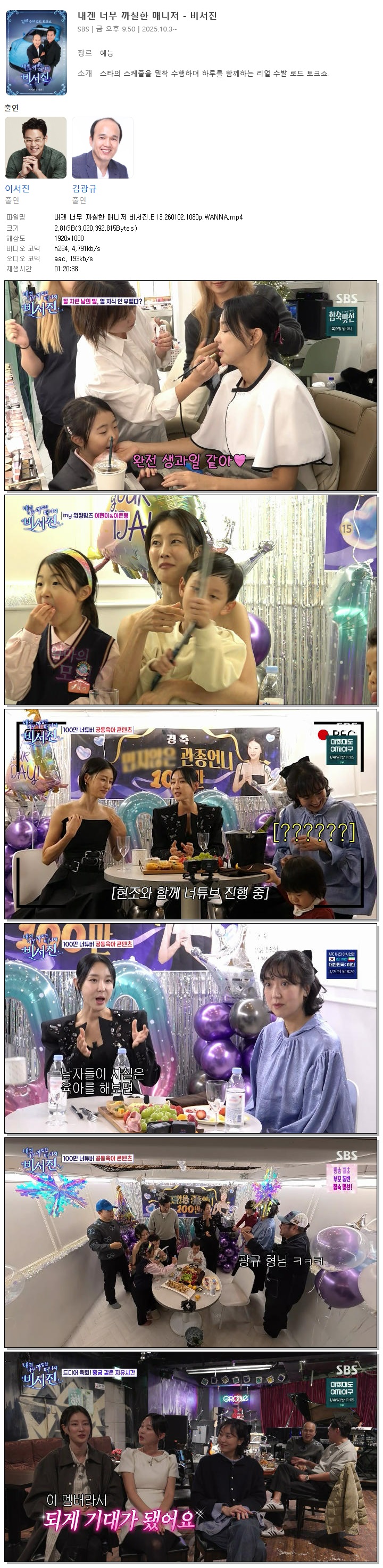 [SBS] 내겐 너무 까칠한 매니저 비서진.E13.260102.1080p.WANNA[이현이, 이지혜].mp4 2.8 G 01:20:38 1920x1080