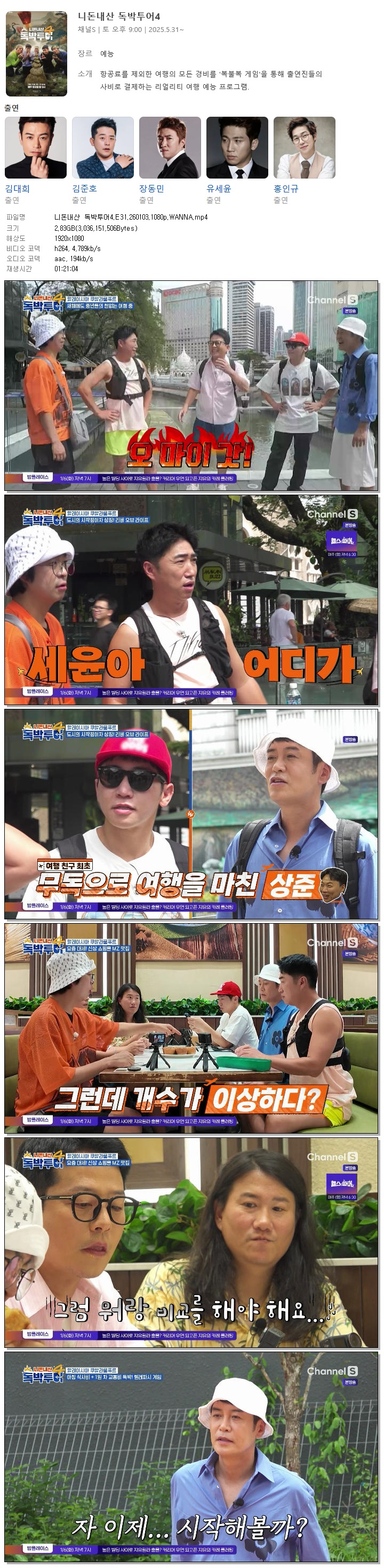 | [채널S] 니돈내산 독박투어4.E31.260103.1080p.WANNA[김대희, 홍인규].mp4 | 2.8 G | 01:21:04 | 1920x1080 |