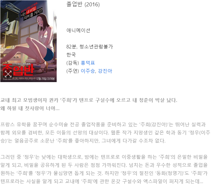 본 정보내용은 청소년유해매체물로서 정보통신망이용촉진 및 정보보호 등에 관한 법률 및 청소년보호법의 규정에 의하여 만 19세 미만의 청소년이 이용할 수 없습니다. 아동·청소년 음란물(야동,포르노)을 제작·배포·소지한 자는 형사 처벌을 받을 수 있습니다.