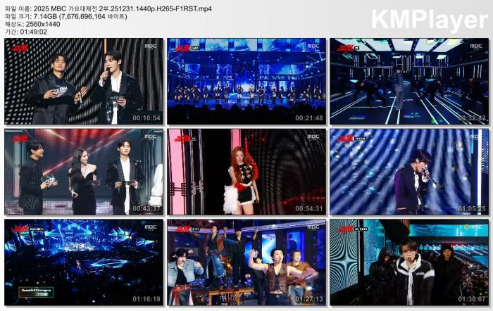 | 2025 MBC 가요대제전 2부.251231.1440p.H265-F1RST.mp4 | 7.1 G | 01:49:00 | 2560x1440 |