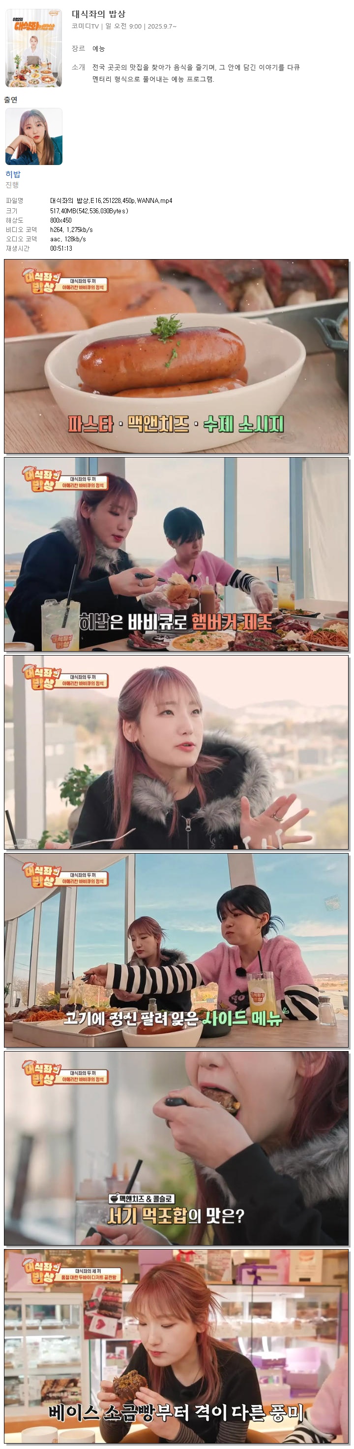 | [코미디TV] 대식좌의 밥상.E16.251228.450p.WANNA[히밥].mp4 | 517.4 M | 00:51:13 | 800x450 |