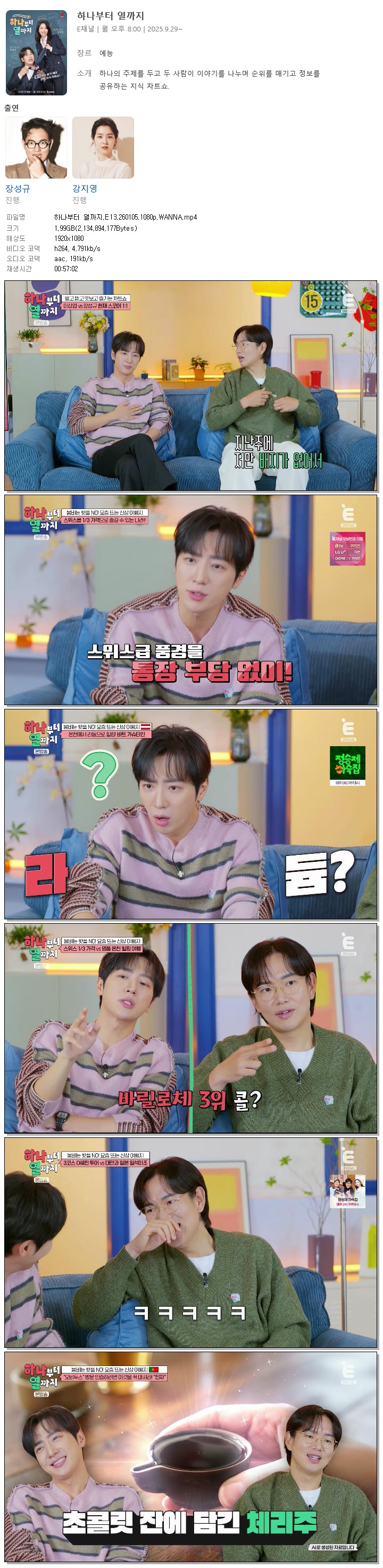 | [E채널] 하나부터 열까지.E13.260105.1080p.WANNA[장성규, 강지영].mp4 | 2 G | 00:57:02 | 1920x1080 |
