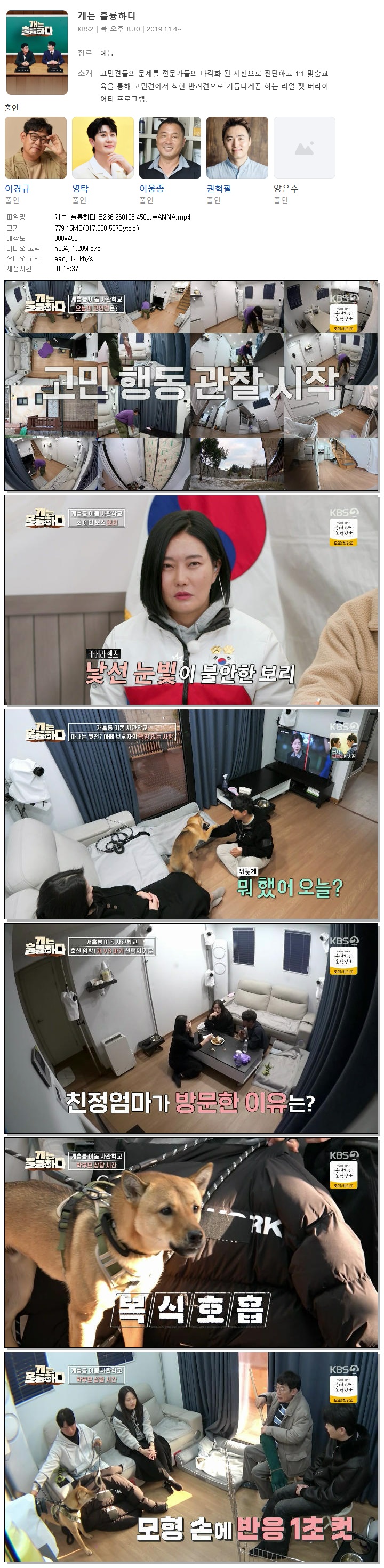 | [KBS2] 개는 훌륭하다.E236.260105.450p.WANNA[이경규, 영탁].mp4 | 779.2 M | 01:16:37 | 800x450 |
