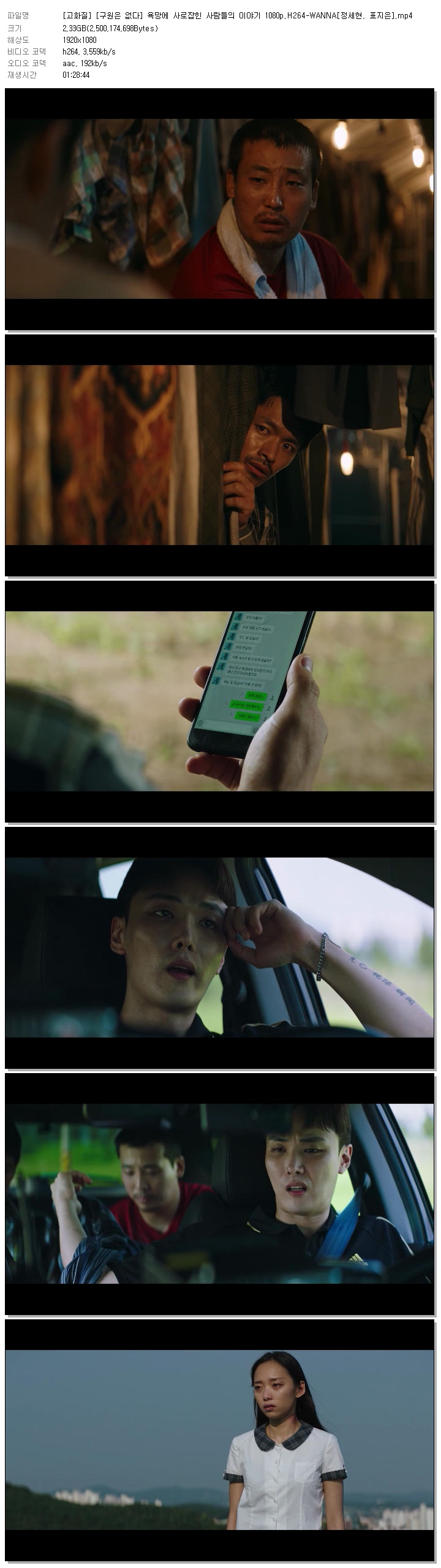 | [고화질] [구원은 없다] 욕망에 사로잡힌 사람들의 이야기 1080p.H264-WANNA[정세현, 표지은].mp4 | 2.3 G | 01:28:44 | 1920x1080 |
