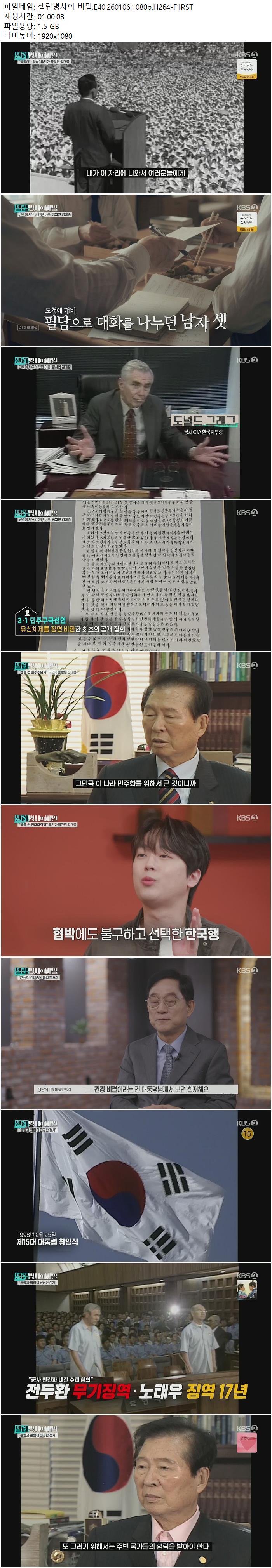 | 셀럽병사의 비밀.E40.260106.1080p.H264-F1RST.mp4 | 1.5 G | 01:00:08 | 1920x1080 |