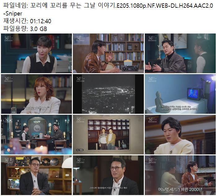 | 꼬리에 꼬리를 무는 그날 이야기.E205.1080p.NF.WEB-DL.H264.AAC2.0 -Sniper.mkv | 3 G | 01:12:00 | 1920x1080 |