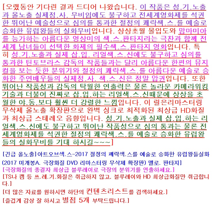 본 정보내용은 청소년유해매체물로서 정보통신망이용촉진 및 정보보호 등에 관한 법률 및 청소년보호법의 규정에 의하여 만 19세 미만의 청소년이 이용할 수 없습니다. 아동·청소년 음란물(야동,포르노)을 제작·배포·소지한 자는 형사 처벌을 받을 수 있습니다.