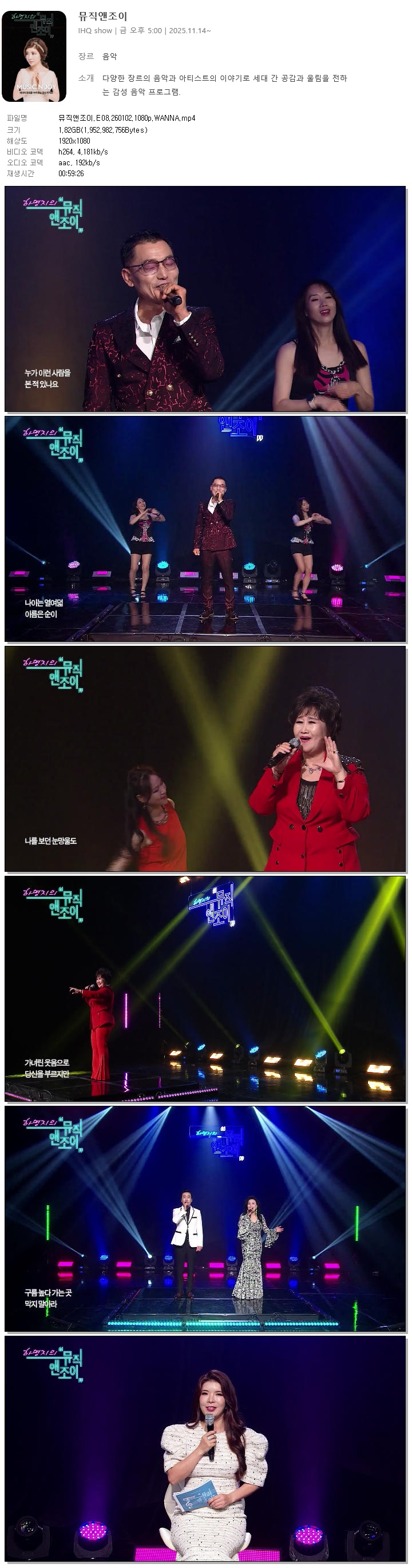 [i SHOW] 뮤직앤조이.E08.260102.1080p.WANNA[하명지].mp4 1.8 G 00:59:26 1920x1080