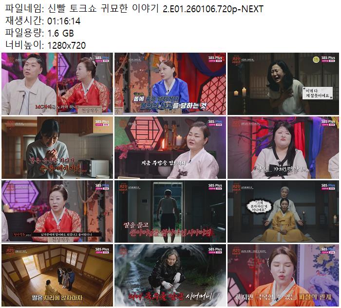 신빨 토크쇼 귀묘한 이야기 2.E01.260106.720p-NEXT.mp4 1.6 G 01:16:00 1280x720