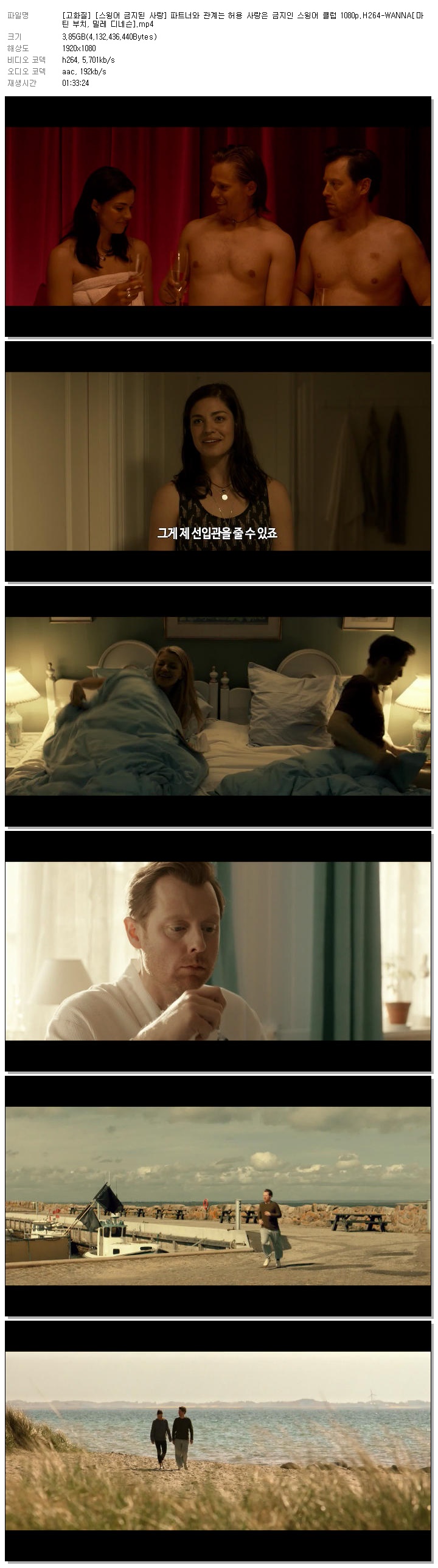 | [고화질] [스윙어 금지된 사랑] 파트너와 관계는 허용 사랑은 금지인 스윙어 클럽 1080p.H264-WANNA[마틴 부치, 밀레 디네슨].mp4 | 3.8 G | 01:33:24 | 1920x1080 |