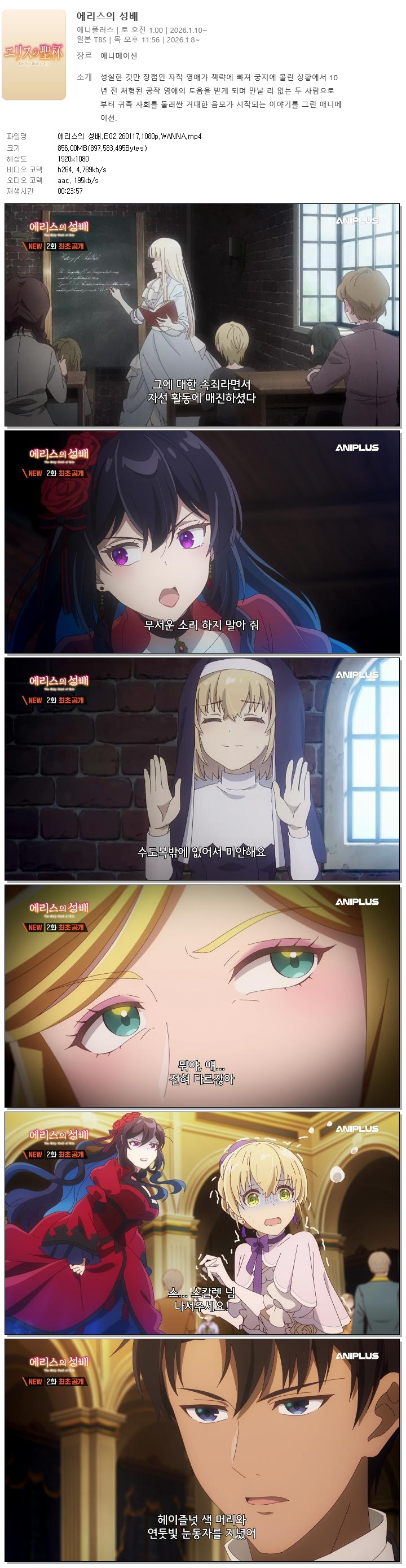| 에리스의 성배.E02.260117.1080p.WANNA.mp4 | 856 M | 00:23:57 | 1920x1080 |