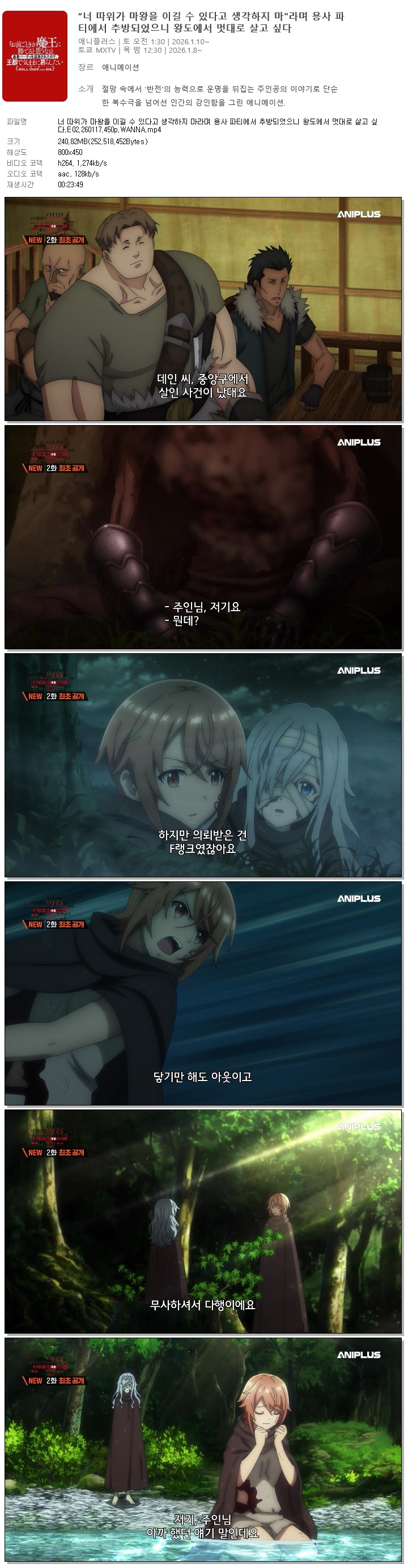 | 너 따위가 마왕을 이길 수 있다고 생각하지 마라며 용사 파티에서 추방되었으니 왕도에서 멋대로 살고 싶다.E02.260117.450p.WANNA.mp4 | 240.8 M | 00:23:49 | 800x450 |