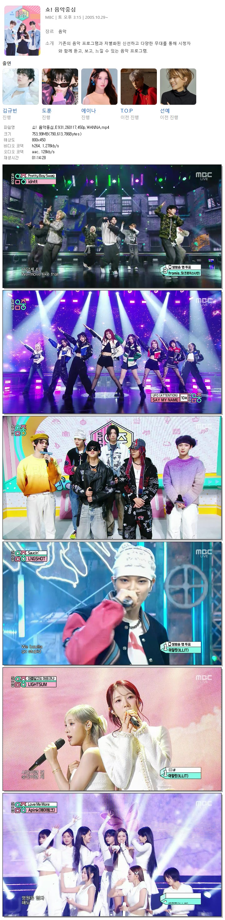| [MBC] 쇼! 음악중심.E931.260117.450p.WANNA[엔하이픈, 엔싸인].mp4 | 754 M | 01:14:28 | 800x450 |