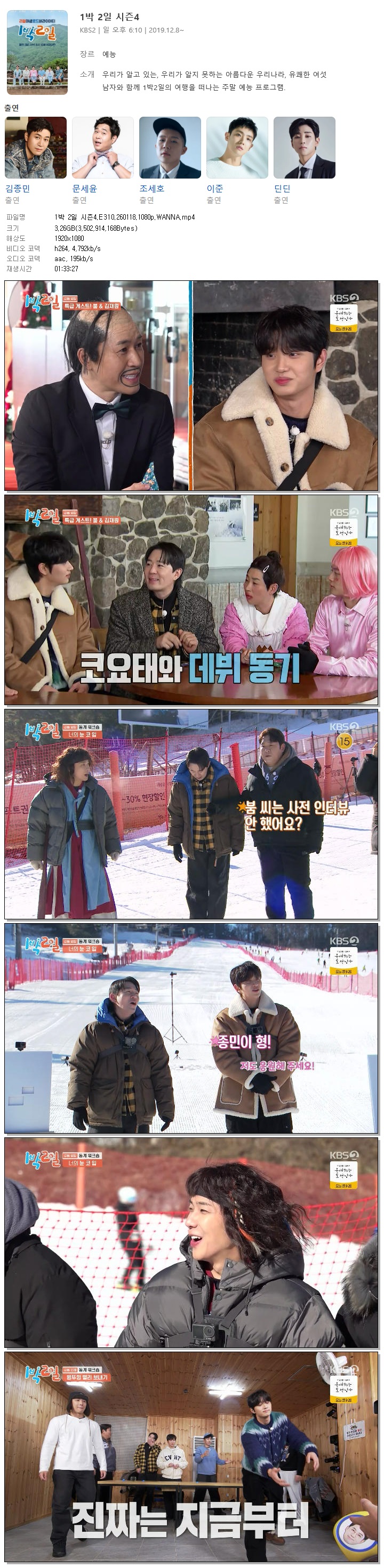 | [KBS2] 1박 2일 시즌4.E310.260118.1080p.WANNA[붐, 김재원].mp4 | 3.3 G | 01:33:27 | 1920x1080 |