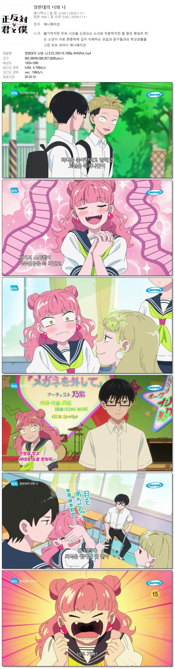 | 정반대의 너와 나.E02.260119.1080p.WANNA.mp4 | 866 M | 00:24:14 | 1920x1080 |