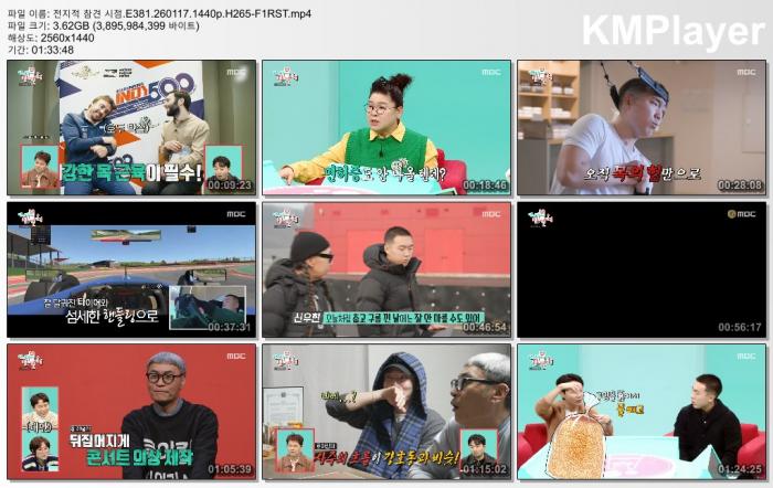| 전지적 참견 시점.E381.260117.1440p.H265-F1RST.mp4 | 3.6 G | 01:33:00 | 2560x1440 |