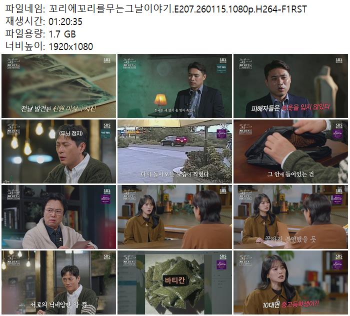| 꼬리에꼬리를무는그날이야기.E207.260115.1080p.H264-F1RST.mp4 | 1.7 G | 01:20:00 | 1920x1080 |