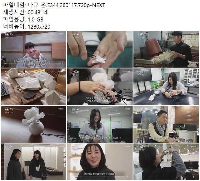 | 다큐 온.E344.260117.720p-NEXT.mp4 | 1 G | 00:48:14 | 1280x720 |