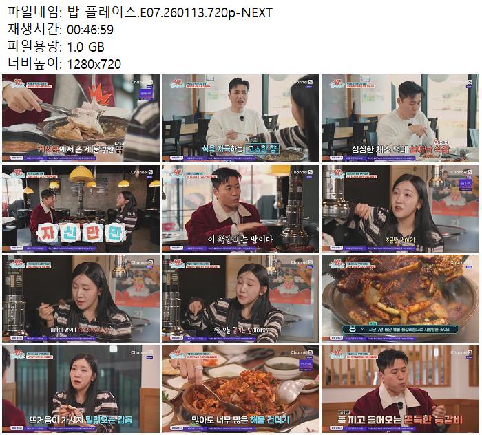 밥 플레이스.E07.260113.720p-NEXT.mp4 1 G 00:46:59 1280x720
